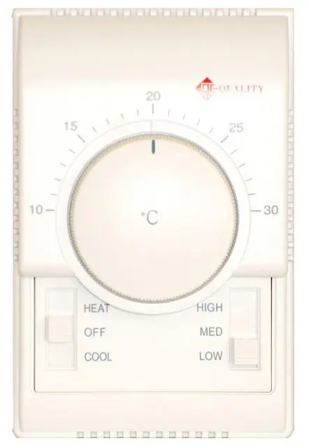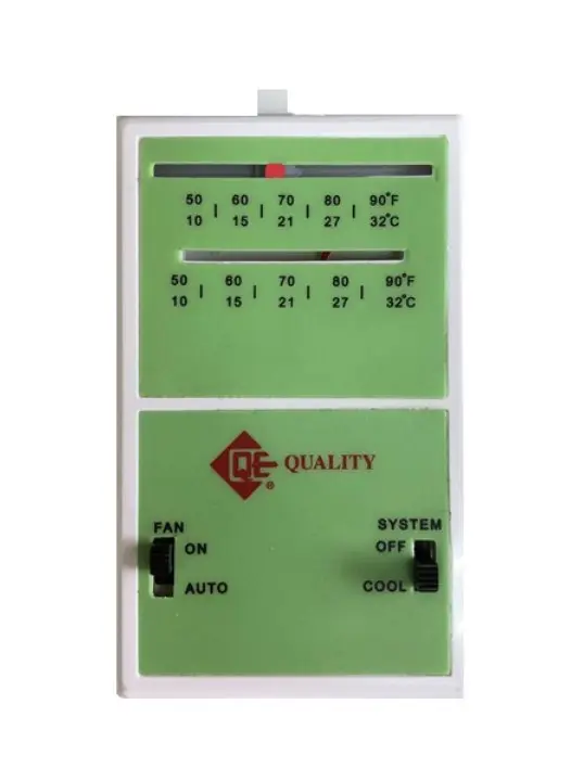 QE QUALITY A/C analog thermostats are attractive wall mounted units which include manual control settings and easy temperature readings. Their economic pricing and excellent quality make them ideal for new and replacement installations.