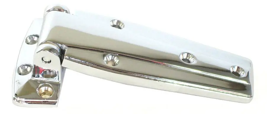 QE QUALITY 7″ self closing edgemount hinge is used in medium to large refrigerator doors, made of high pressure die-cast zinc and finished with highly polished chrome plate, and packaged 1 per box. Self closing with 95 degree angle. Hinge will stay open beyond 120 degree angle. Reversible for use on left or right hand doors. Lift feature allows door to be removed with hinges in place. Adjustable to fit gaps. Individually packaged.